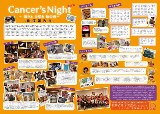 皆様のおかげで、2016年11月6日(日)、東京・池袋のお寺「金剛院」にて『Cancer's night 2016 ~祈りと音楽と秋の夜~』を無事開催することができました。