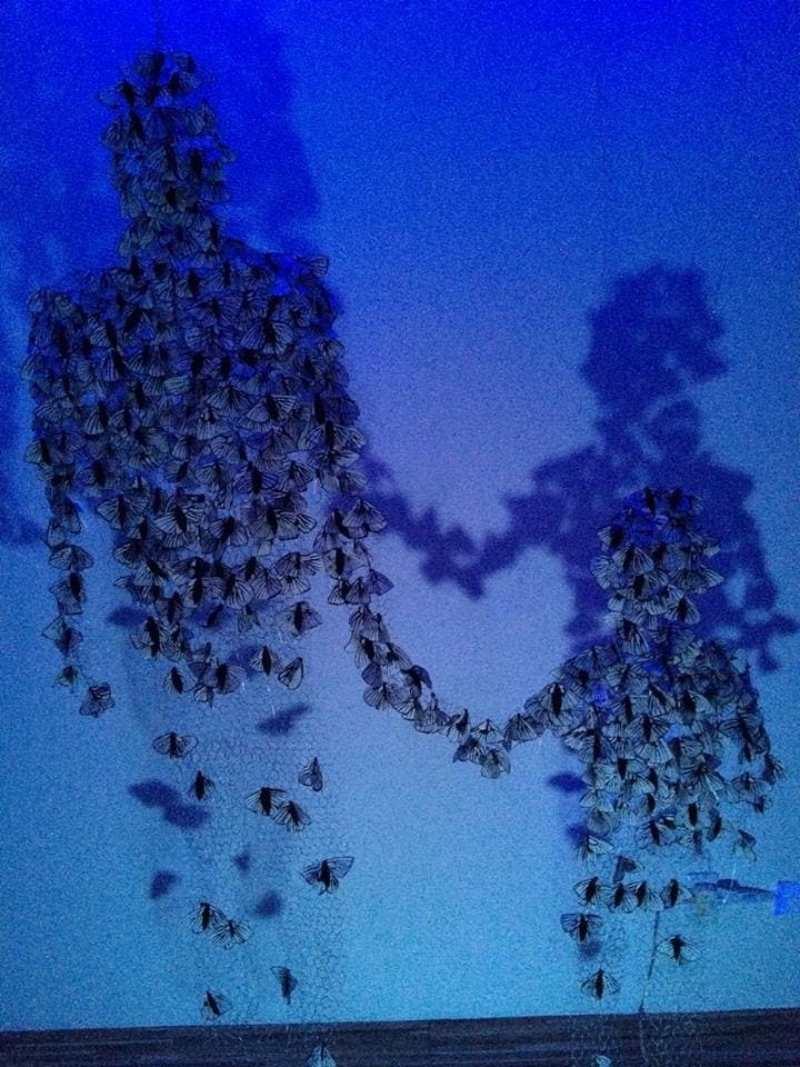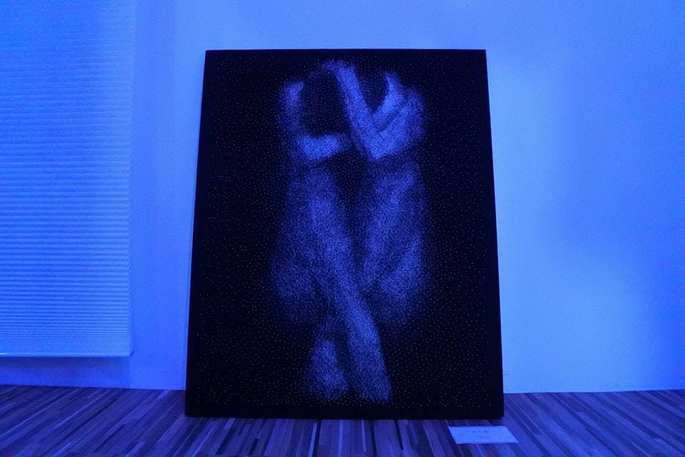 展示会場は青色の照明に限定され、青白い光の中で怪しく浮かぶ作品群は生と死、無言の悲しみと怒りが感じられるものが多くなりました。暗い空間の中での展示会という特徴がSNSで拡散され、普段展示会などには行かないという多くの鑑賞者が来てくださいました。