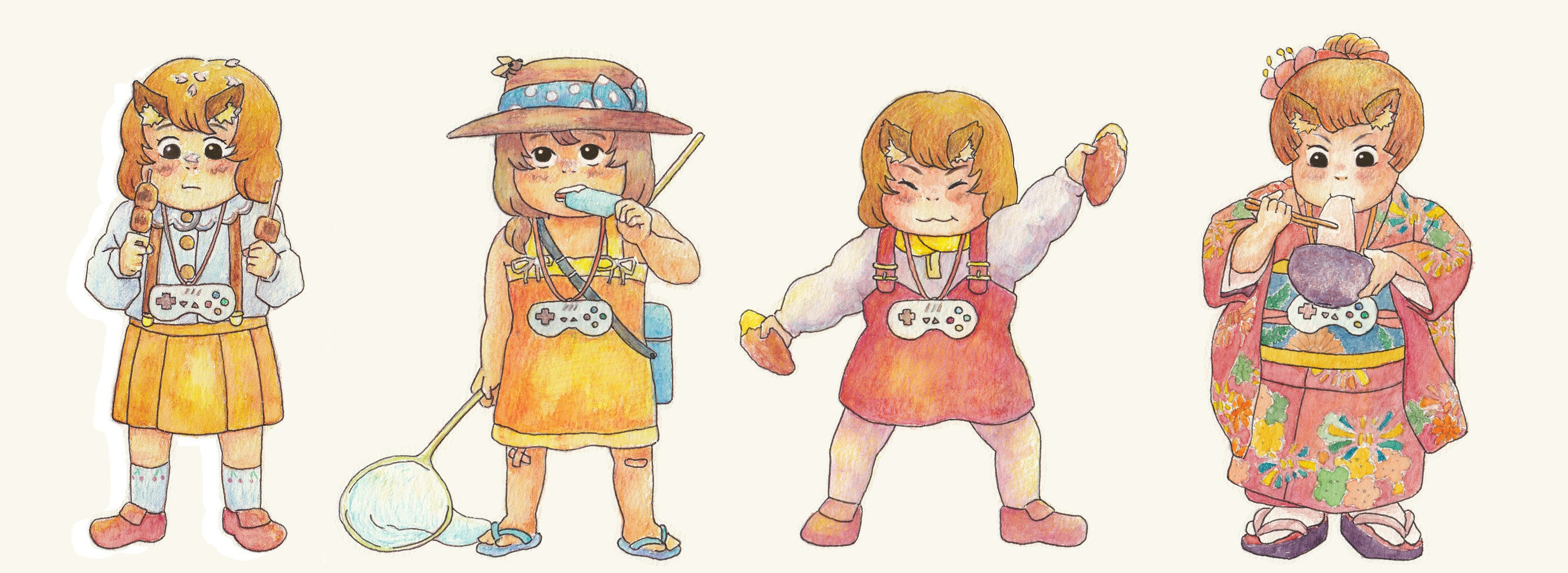 それを元にKAZUKIがA4普通紙にラフ案を三種類ほど描き、その中から一案を採用していただきます。決定案を元にKAZUKIがアナログ画材(主に水彩と色鉛筆)を使ってイラストを完成させます。