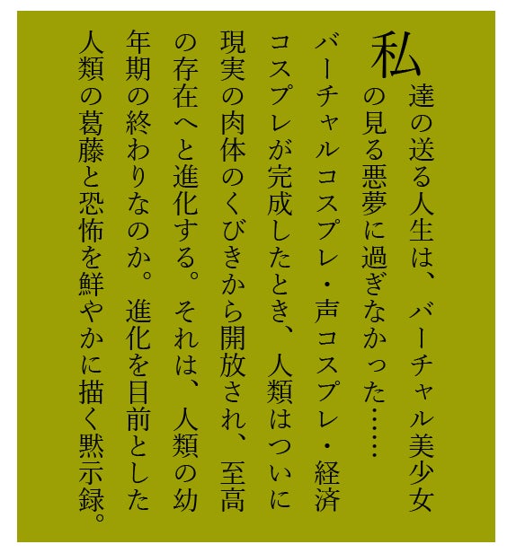 全人類がこの3つのコスプレにより生身の肉体を離れ、バーチャルに活動(バーチャル美少女活動)することで、個人のアイデンティティ・社会経済の在り方をアップデートし、差別や戦争のない、究極の理想世界を作れるのではないか?