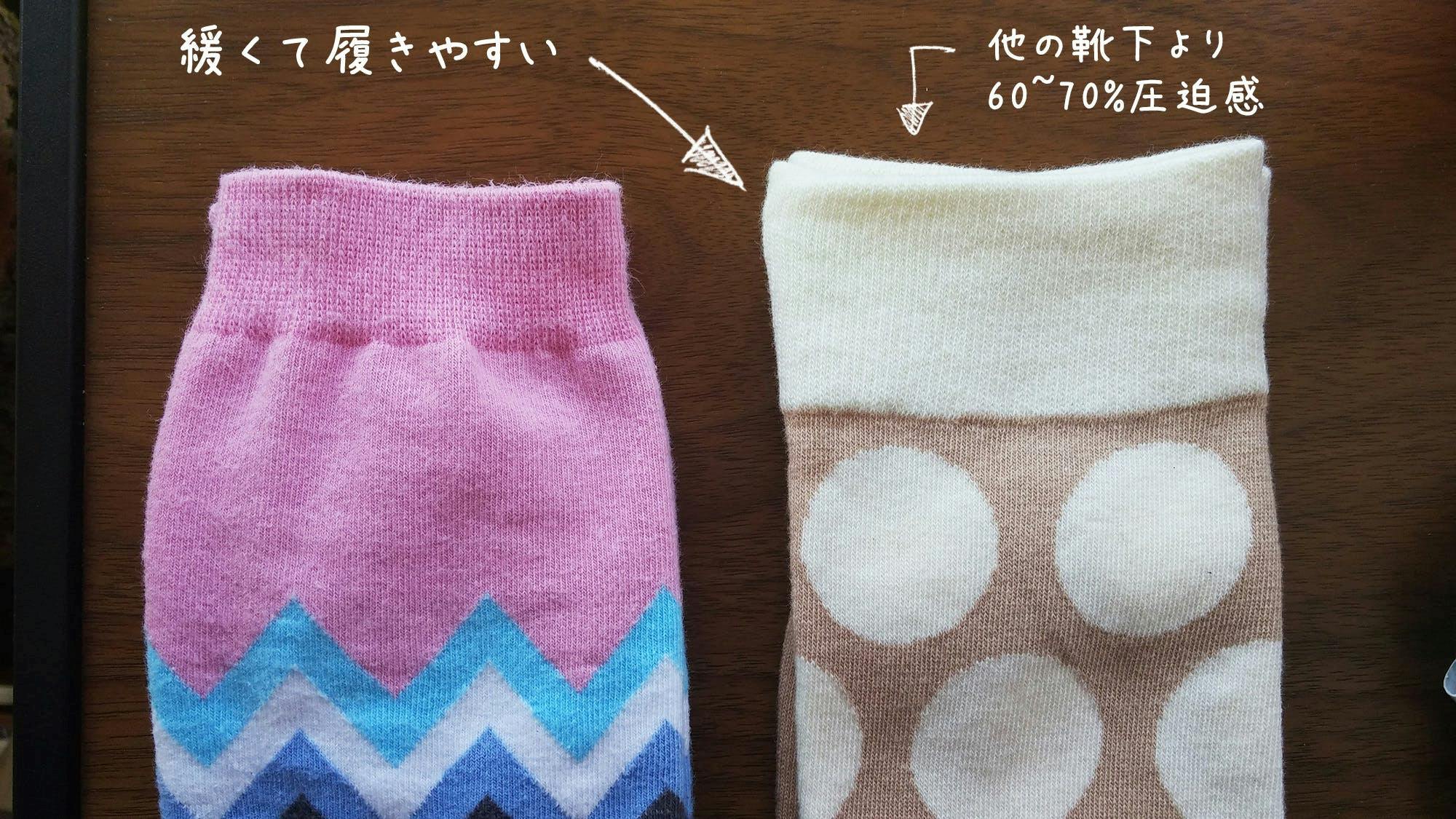 3 .今度、制作する靴下はすべて締め付け緩い履き口でございます。普通の靴下と比べ、約30%ぐらいゴム繊維の量を減らしたから、靴下の締め付けにお悩みの方におすすめです。
