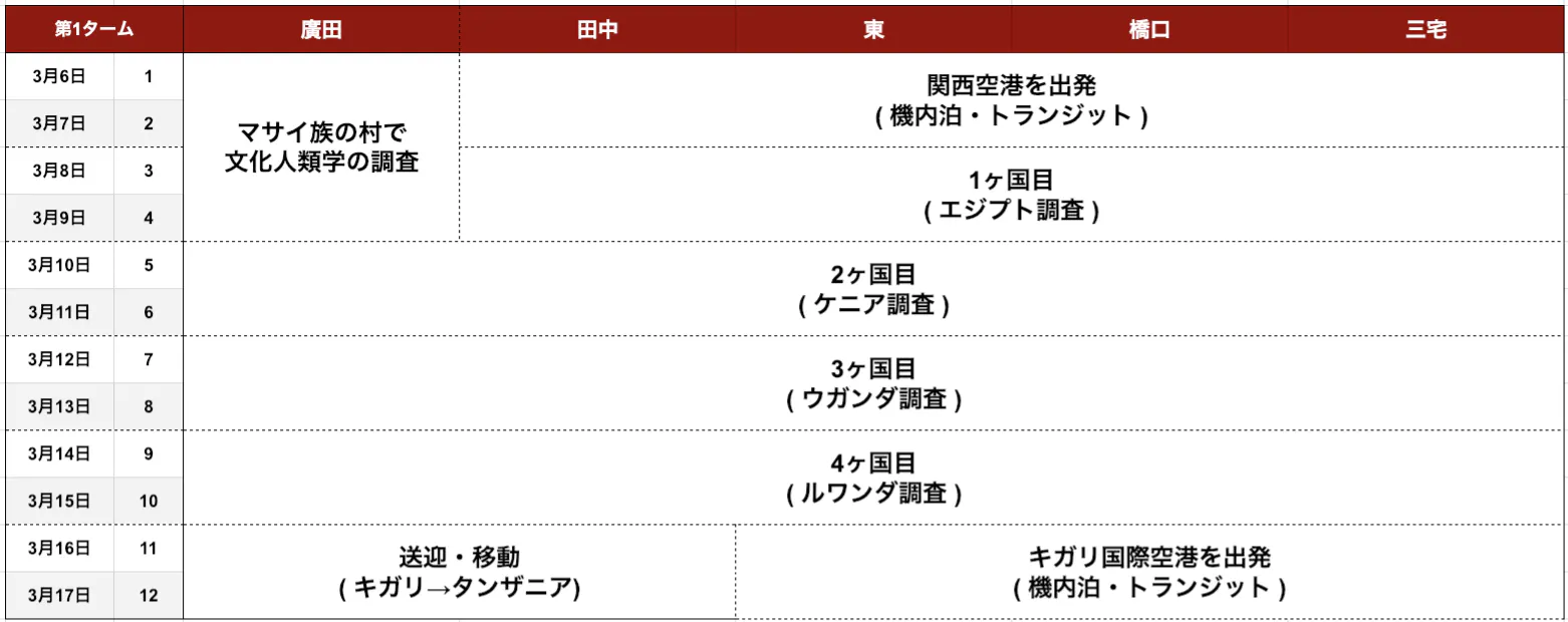 この40日間を通じて「1人行動 ⇆ 集団行動」を繰り返しつつ, 同時に「個人⇆団体」に着目する中で出来る限り僕たち自身の固定概念やフィルターに囚われず,「現地の人からみたアフリカ」や, その背景にあるアフリカの人の価値観を調べてきます!
