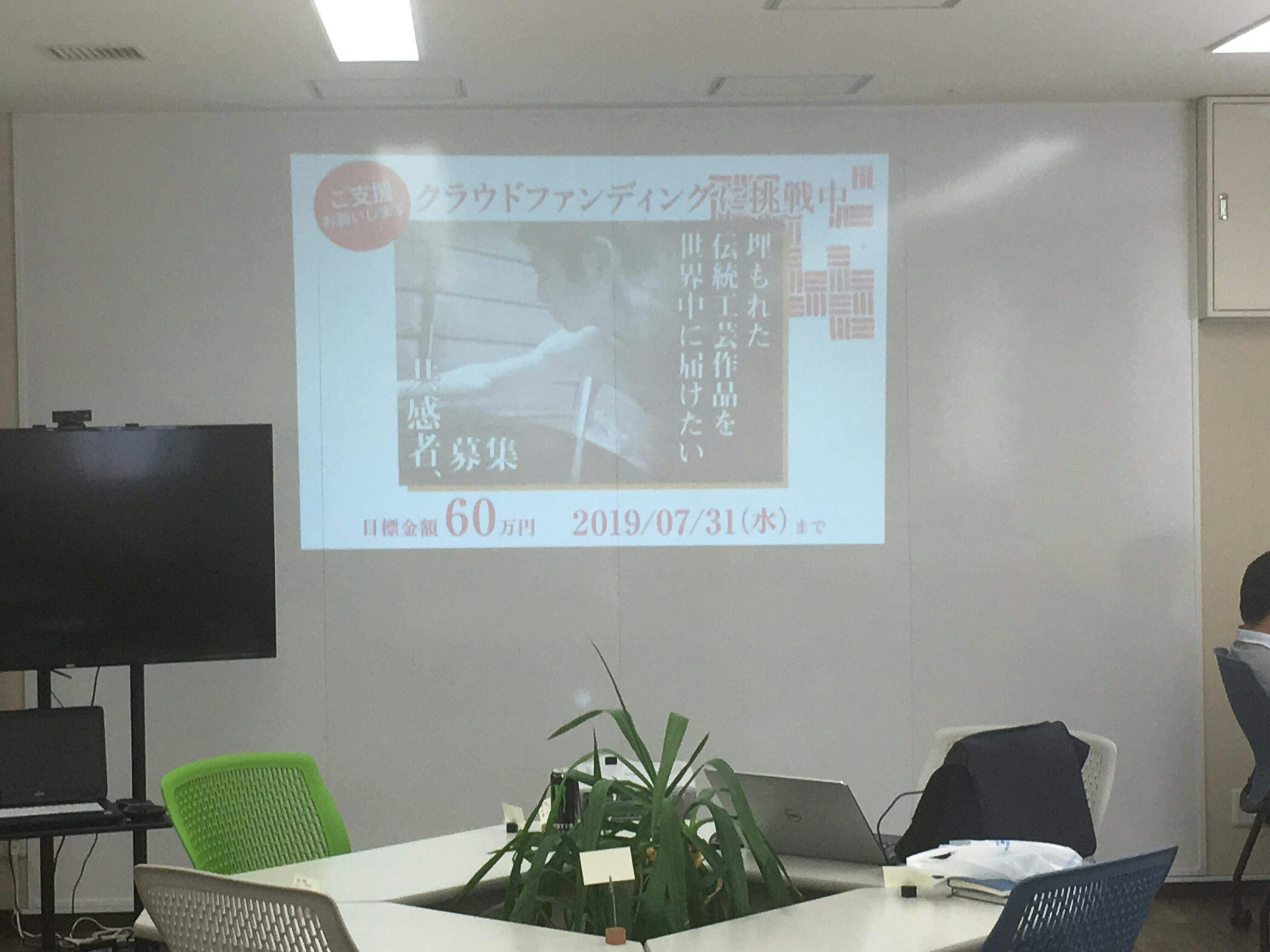 奈良県生駒市のテレワーク&インキュベーションセンター【イコマド】のスクリーンにクラファンの宣伝が常時流れるようになりました。