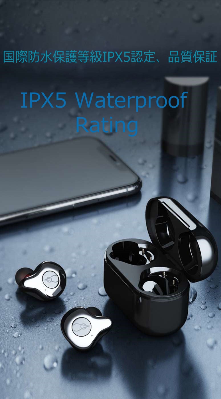 IPX5级防水設計により水の侵入を防ぐ、汗や水しぶき、急な雨などからイヤホンを守る防水仕様。アクティブシーンに最適スポーツイヤホンです。完全防水ではないため、どしゃ降りで大雨の中での使用や水に浸かることは必ずお避け下さい。
