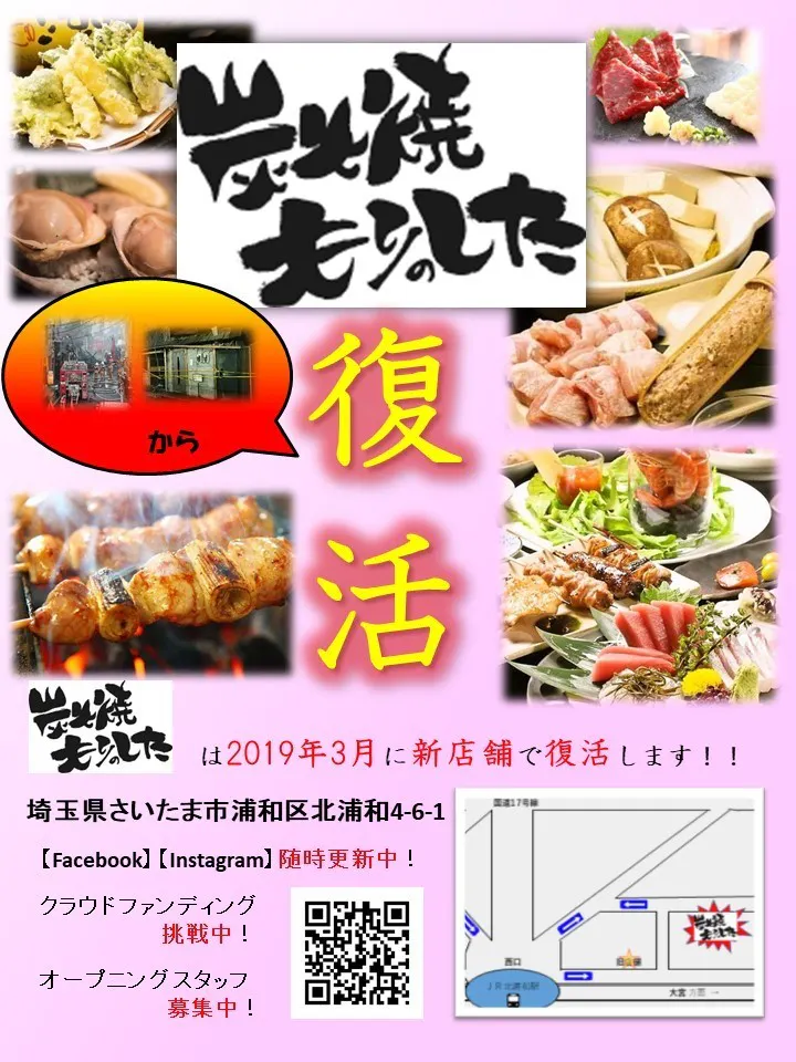 当初はシンプルに「店名ロゴ」と「復活!!」の文字だけでいこうかと思っていましたが、最終候補2つの決選投票のつもりでアップしたSNSでの反応や直接いただいたアドバイスで、我々のいたらなさに気づくことができました!