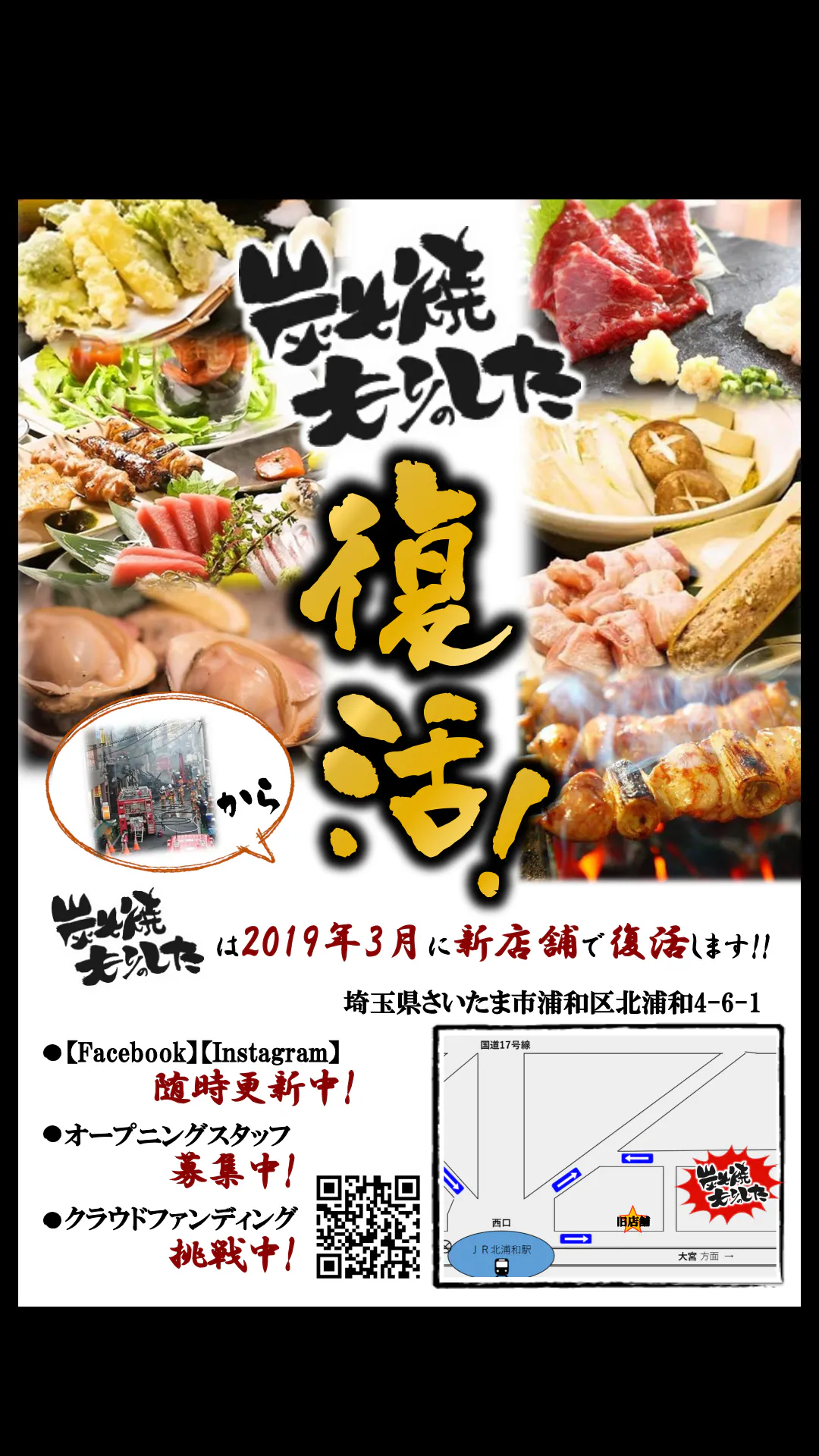 以前より計画していた北浦和駅西口の階段に掲示予定の復活告知ポスター。
