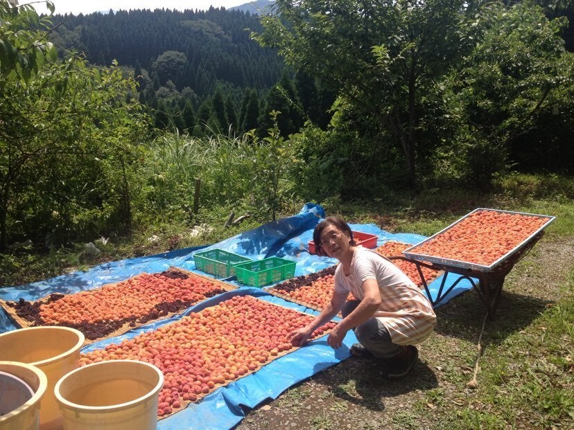 澄んだ空気の中で天日干しにされる梅干し。この作業で旨味が増します