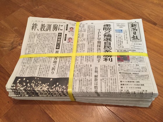 新潟日報広告部より、10月24日の朝刊30部(購入予定だったのですが)、提供いただきました!!こちらはパトロンになってくださった皆さま全員へ送付させていただきます!