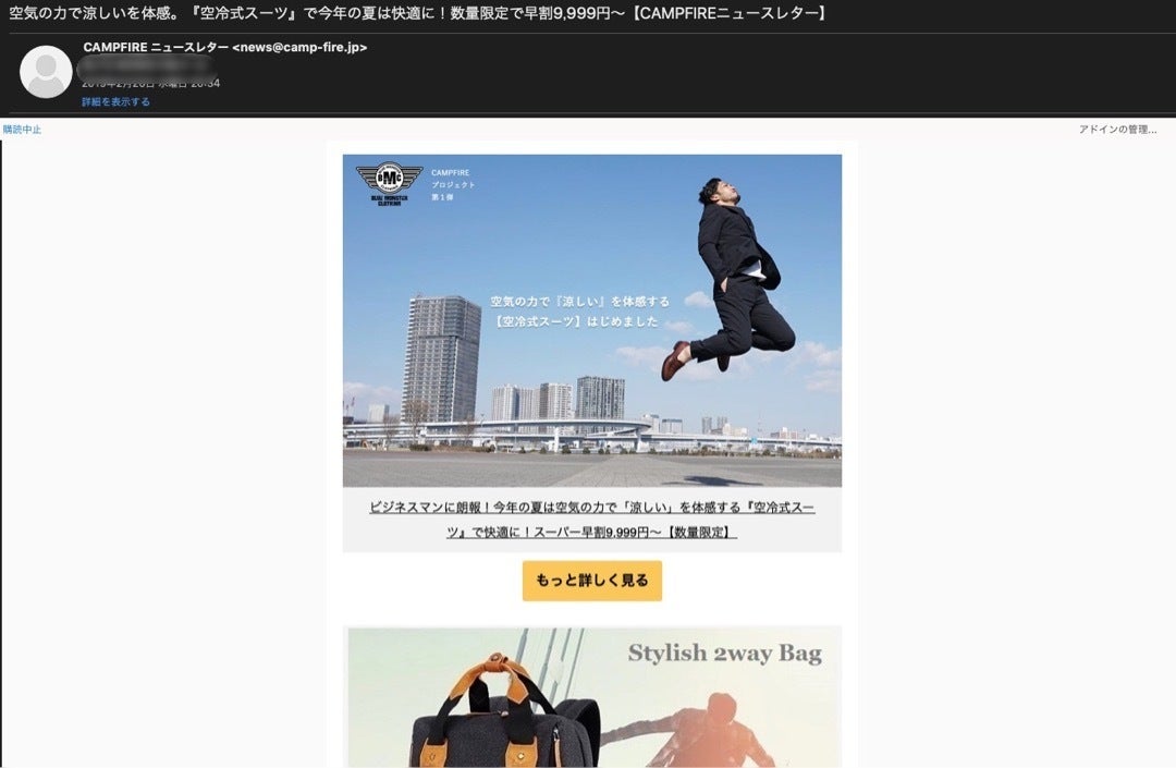 本日配信のCAMPFIREニュースレターに【空冷式スーツ】が掲載されております。