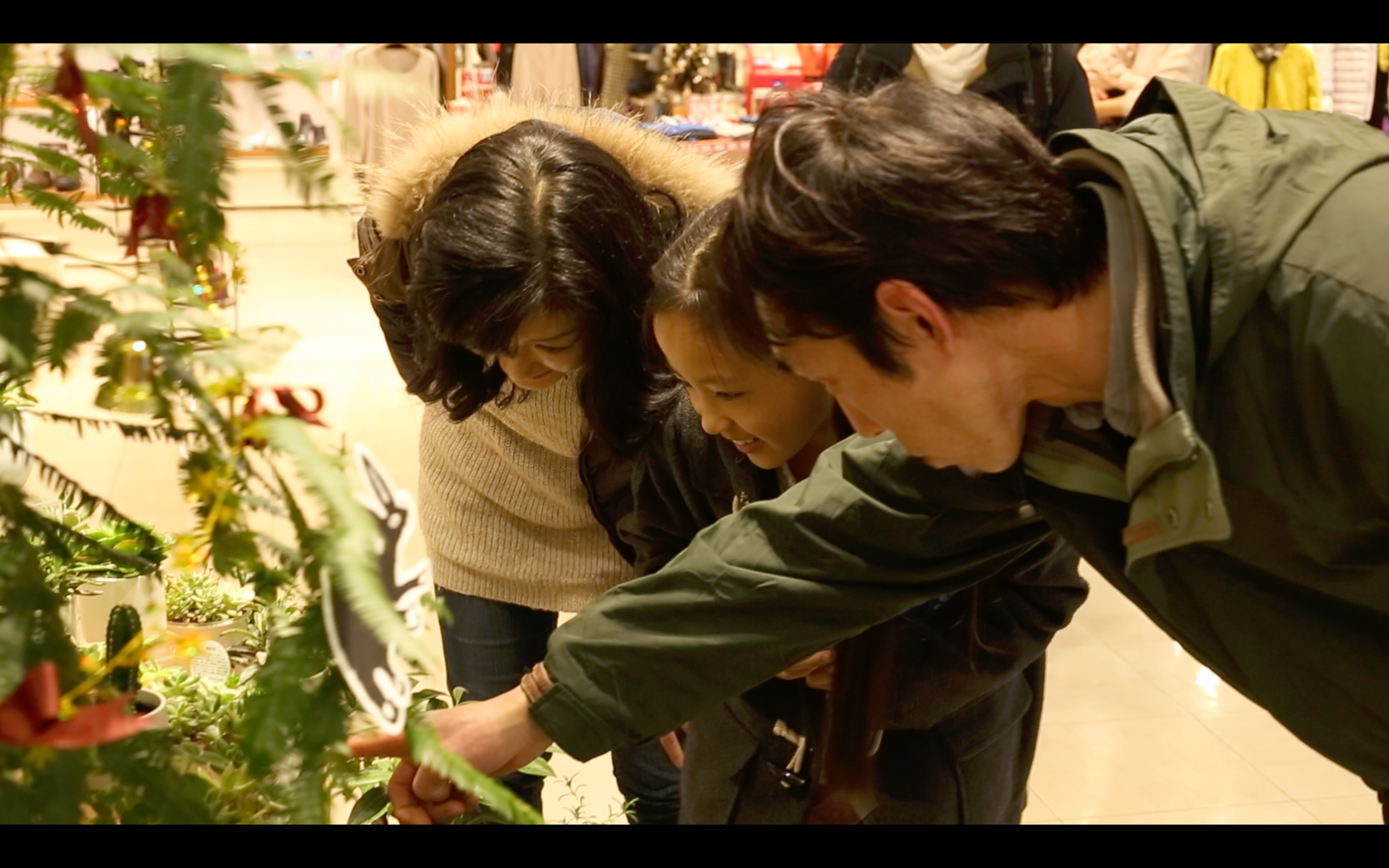弘太はバイトもせずにいる大学生。大学が冬休みに入り一年ぶりに実家に帰省する。幸せなクリスマスを家族と過ごし、変わ らず過ぎていく実家での生活。その中で、弘太は今まで気が付く事のなかった家族の様々な一面に気がついていく。今まで見 てきたパパとママとは違う姿。家族、一人の人間の姿。そんな家族の現状を知り、自分が大人に近ずいたのか、周りが変化し ているのか、自らを省みる弘太。離れの家へ帰る日が近づくにつれ、増していく家族への違和感。自分に何ができるのだろう か。弘太はその思いを抱えたまま実家を後にするのであった。