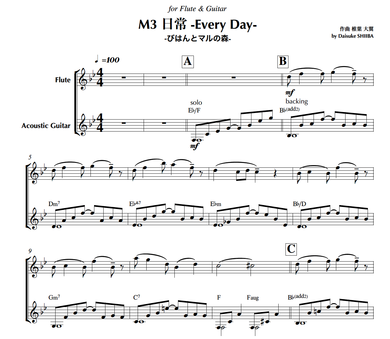 そして制作者りるを氏直々の「リコーダー(フルート)とギターのための音楽をお願いします」というオーダーをもとに作曲したのが、今回の「びはんとマルの森」のサウンドトラックです。