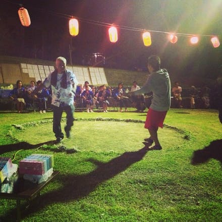 写真:城久の島あそび。相撲やカラオケ大会、八月踊りと盛り上がりました。