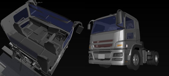 キャブ後方のエアクリーナーを再モデリング。 後部の反射板やライト類もアップグレードしています。 ミラーも運転席支点に合せてゆっくりとですが、修正を続けています。 まだ完成時期をお伝えできる段階ではありませんが、残りはほぼ内装作業になります。 初期版はそこそこの段階で一旦リリースし、アップデートをかける形になるかもしれません。 ポリゴン数もかなり増えてきたのでNormal Mapを使用するなど軽量化も後々必要になるかなと考えています。