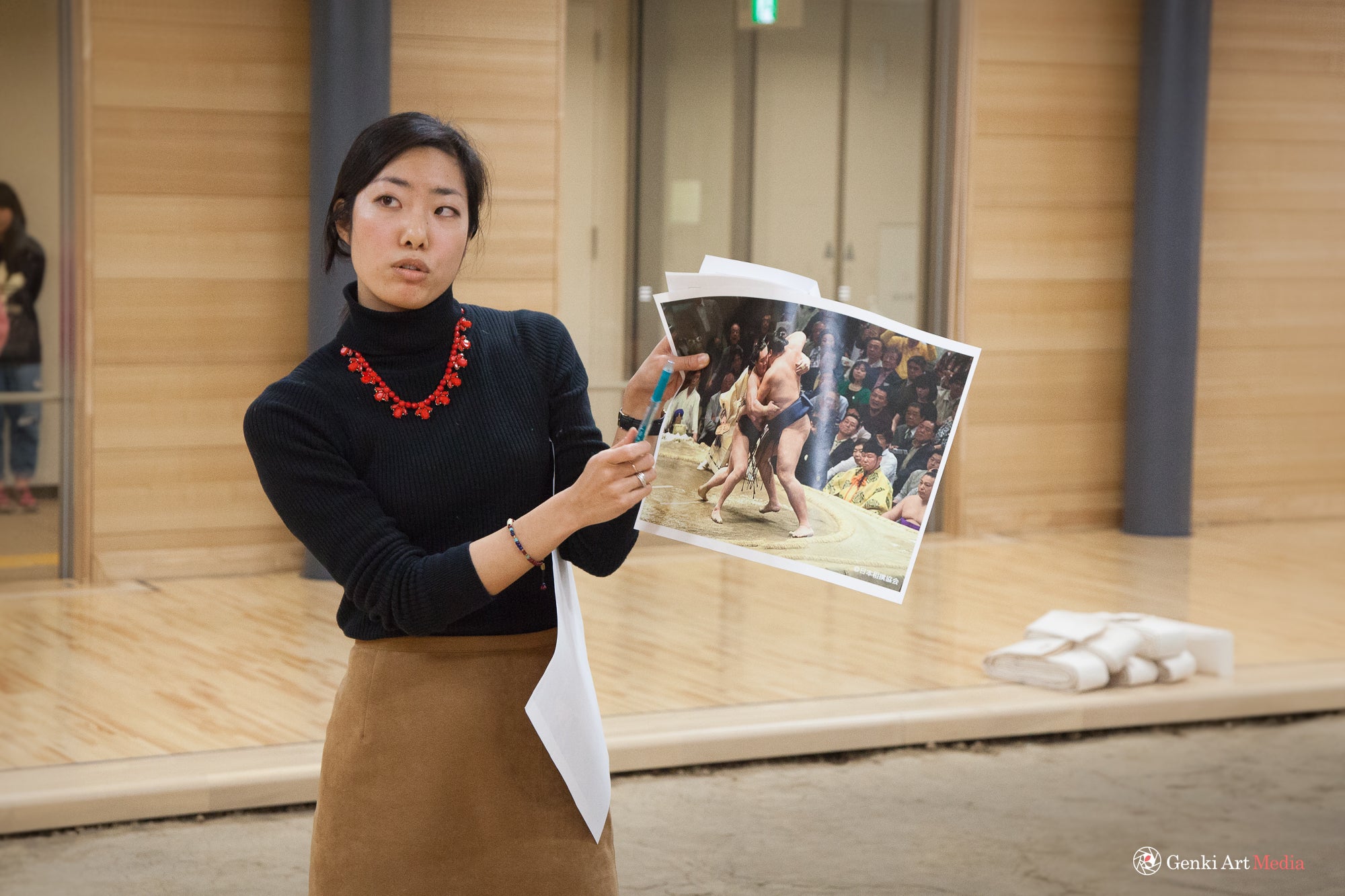 力士と通訳スタッフが