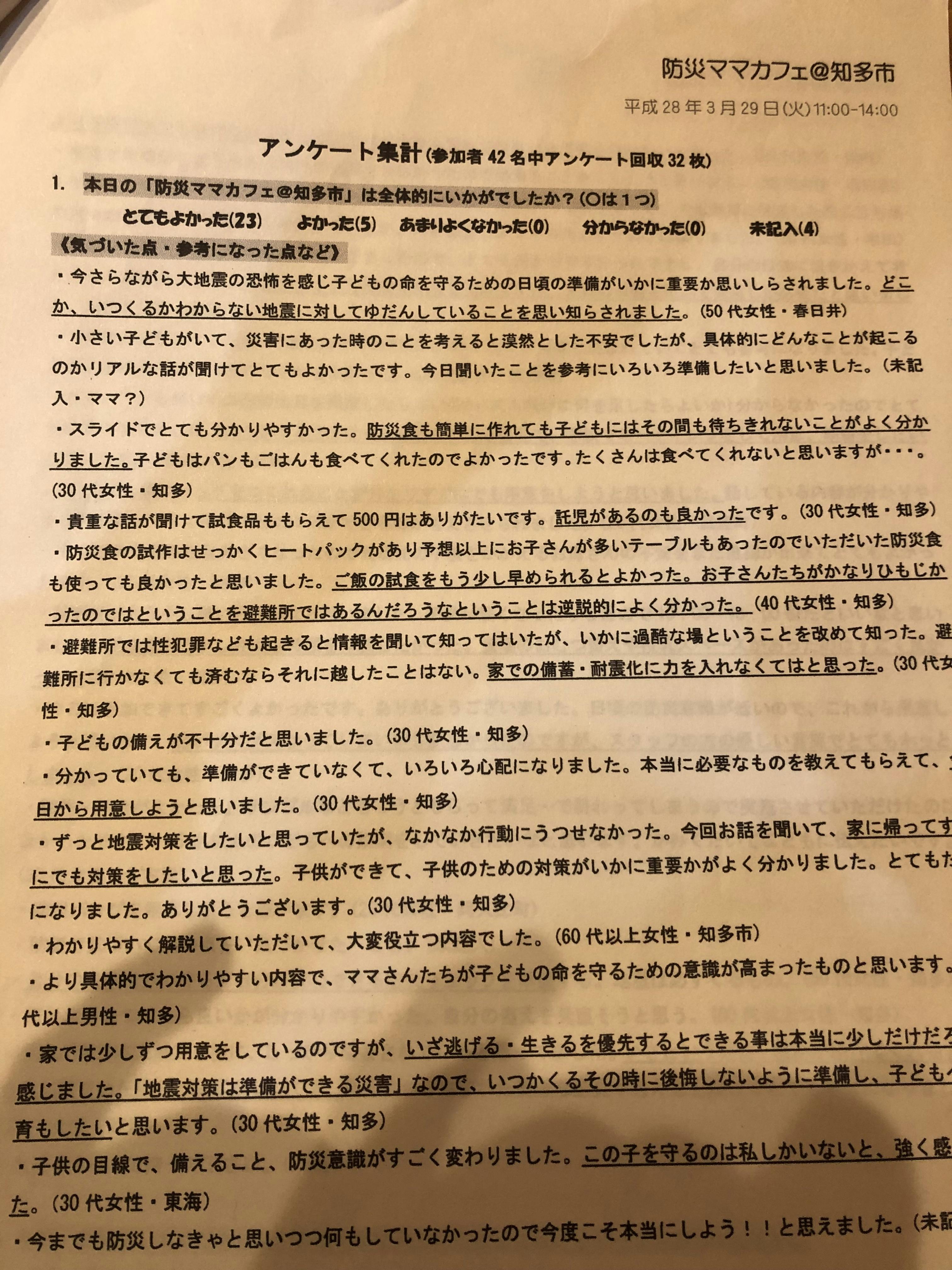 こんばんは‼ちたMAMA です!現在、告知チラシの作成をメンバーさんに依頼しています♬過去のチラシを参考に考えてくれているそうです^_^ちたMAMA メンバーは素人ママさんばかりですが、みんなで力を合わせて沢山の方の目を引くチラシができるといいなと思ってます♬今週中にはある程度の形が出来上がる予定です。開催をより良いものにするために、第1回目のアンケートを改めて読み返し中です!