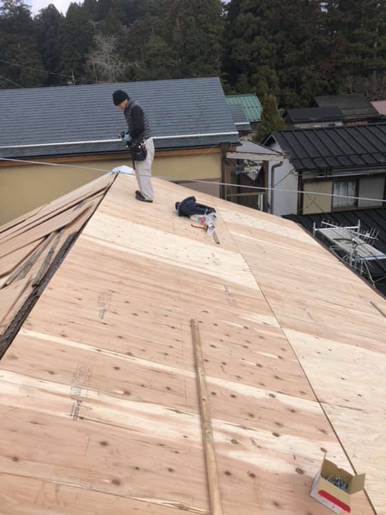 ①屋根の全面葺き替え修理(12月で終了。ただし雪解け後、雪での雨漏りがあった場合補修)
