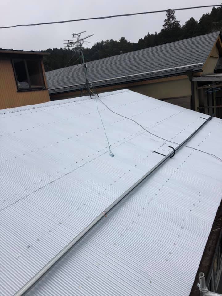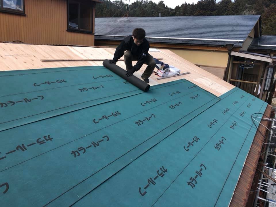 ただ、降雪までには時間がありません。クラウドファンディングでは屋根の改修資金が間に合いません。急遽、ご縁の仲間に資金援助をしてもらって屋根改修費を確保しました。そして先の12月末に、まずは私が足場を組んで作業環境を確保。そして後から来た仲間と共に屋根修理を開始して、無事に雪が降る前に屋根の葺き替え修理が終わりました\(^O^)/。最後の日は雪が降りはじめましたが、ギリギリセーフでした。