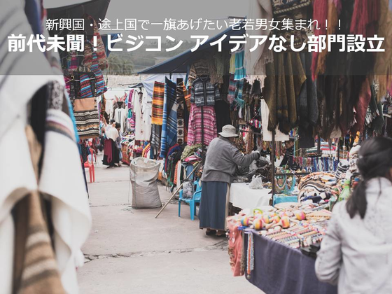 今回で第4回目の開催となります「40億人のためのビジネスアイデアコンテスト(仮)」、今回より 新部門として「やる気だけ部門」を設置いたしました。この部門は、「途上国で一旗あげたい」や「途上国の社会課題を解決したい」と考えながらも、具体的なアイデアがなく、どうしたものかとお悩みの方々のための部門です!