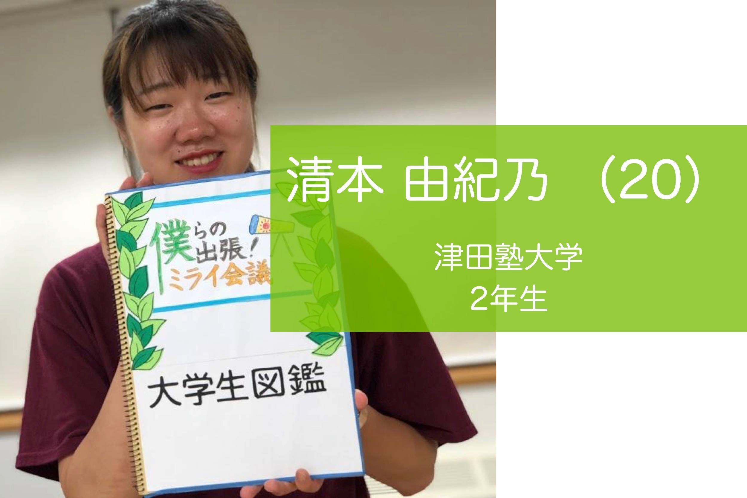 今回のイベントの学生リーダーをしています、津田塾大学2年の清本由紀乃といいます!将来は中学校教員を目指しており、全ての生徒が自分や仲間と向き合って学び会える場を作るために日々学んでいます!