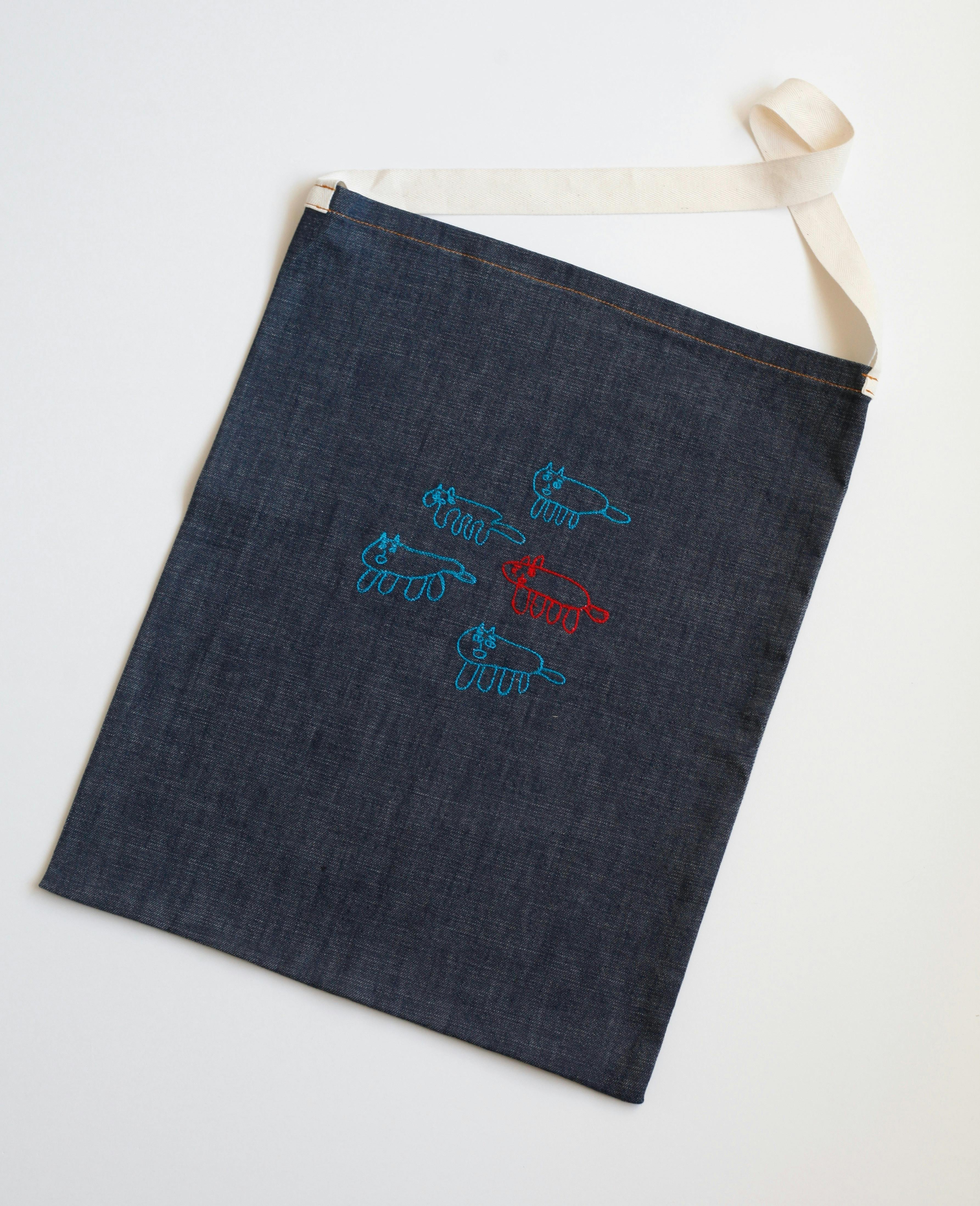 ①トートバッグをご検討される方は、リターンページより、『葉っぱ・りんご・unico犬』の3種類の中からご希望の刺繍デザインを選択してください。