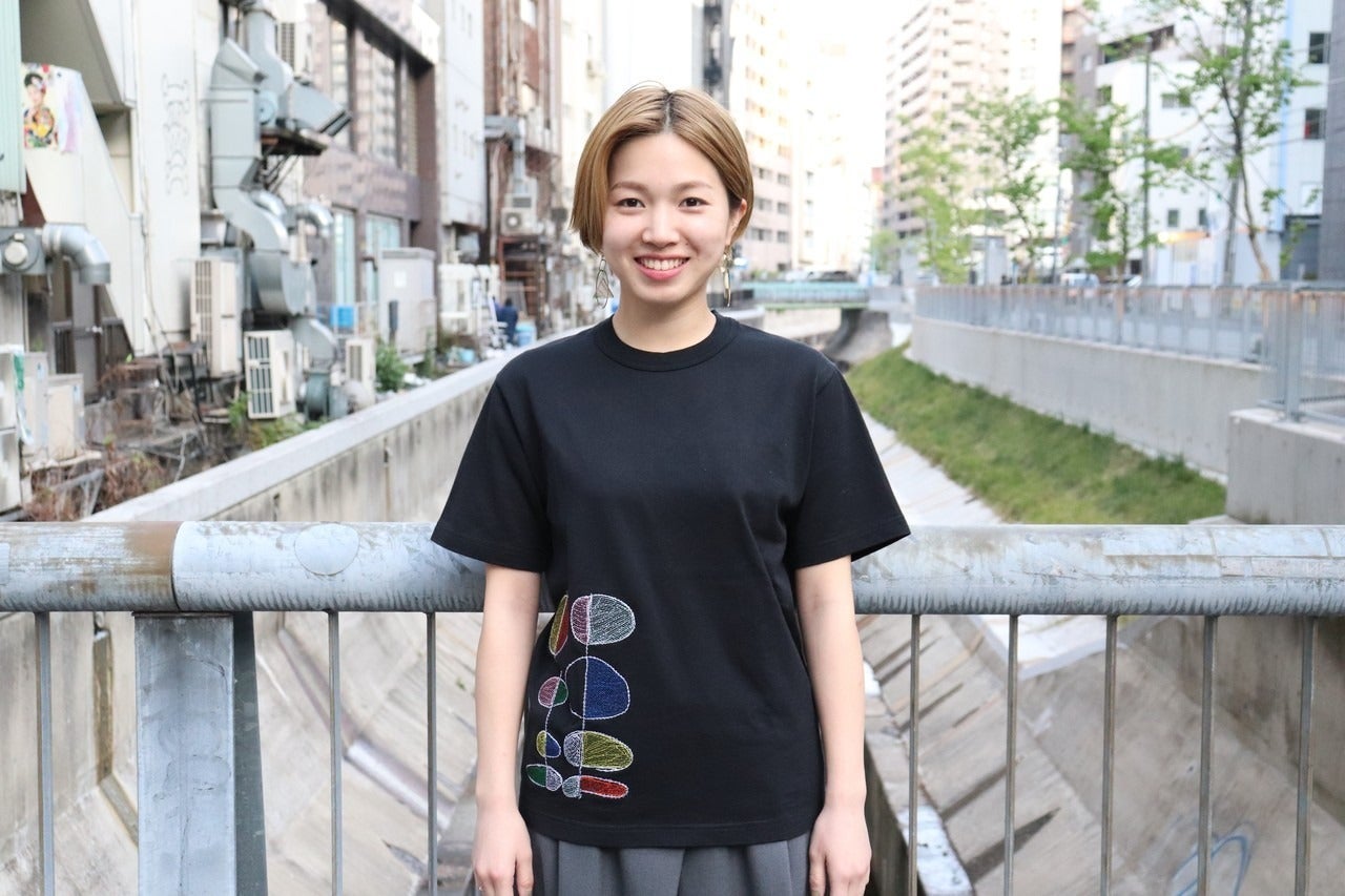 約2年、ヘラルボニーを支え続けている彩紀さん。インタビューを受けてくれてありがとう!!彩紀さんが着ている「葉っぱ」のTシャツは下記のページからご覧になれます!