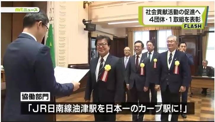 この度、宮崎県知事より、昨年の日本一のカープ駅をつくるプロジェクトを社会貢献の協働部門で表彰していただきました!
