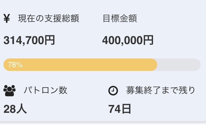 ありがとうございます!おかげさまで、プロジェクト開始10日で目標金額を達成することができました!パトロン様からの応援メッセージもすべて目を通しています。うれしいメッセージばかりで本当に幸せものです。ありがとうございます。よりたくさんの方にぼくの活動を知ってもらって、よりたくさん御支援頂き、リターンや今後の活動を通してみなさんにより大きくしてお返しできるように、まだまだクラウドファンディングも面白くしていきます!取り急ぎ、ご報告でした!みなさん本当にありがとうございます!