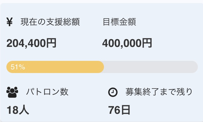 現在、¥204,400御支援頂きました!!