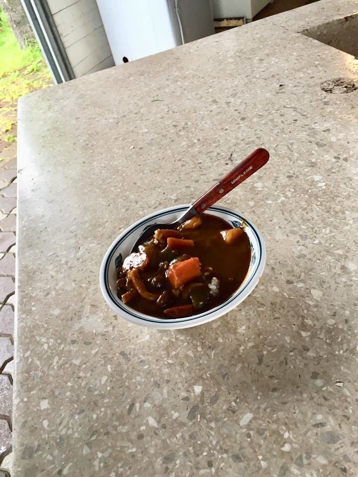 銭湯で会った人に翌朝再会し、カレーを分けてもらったり、