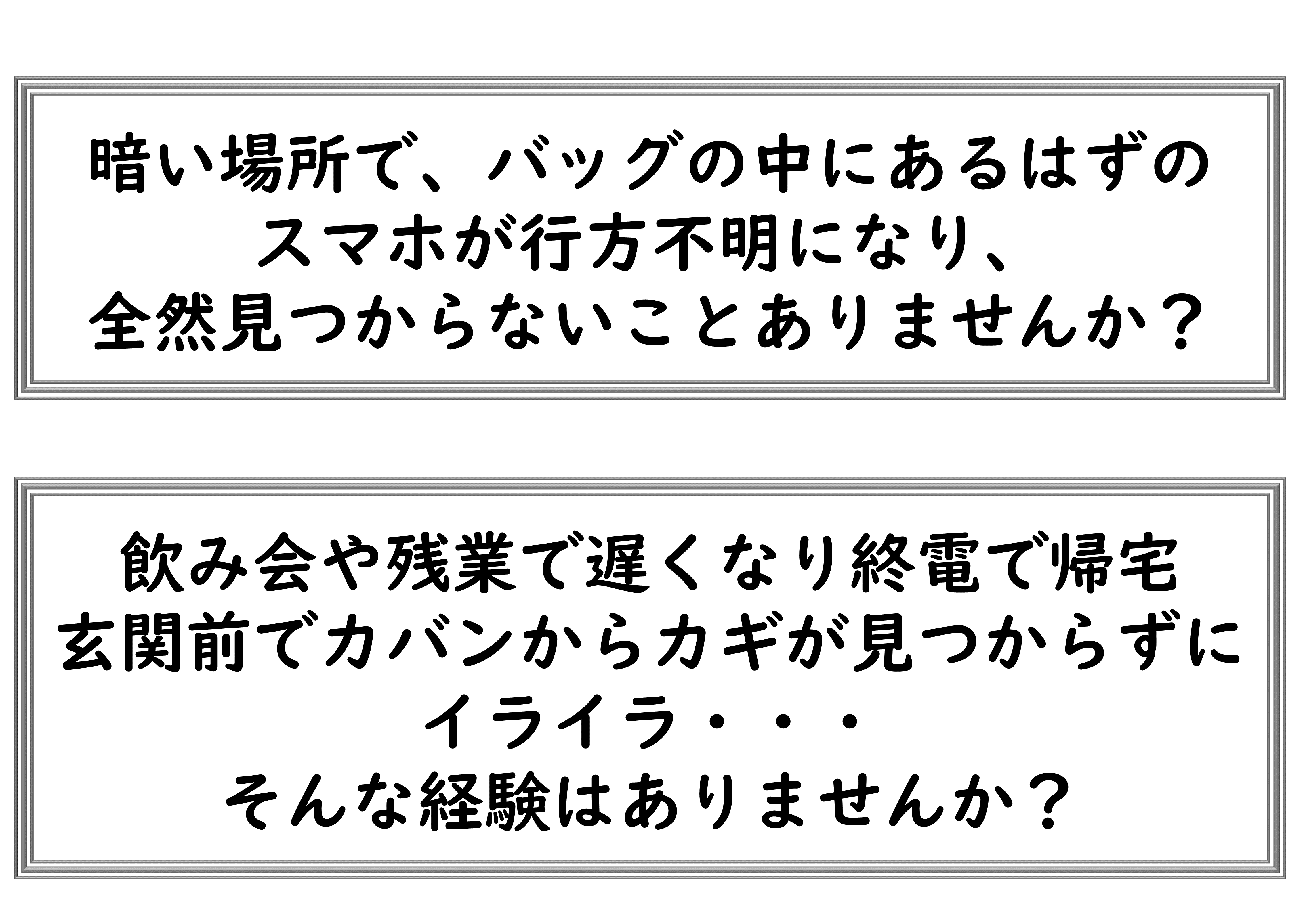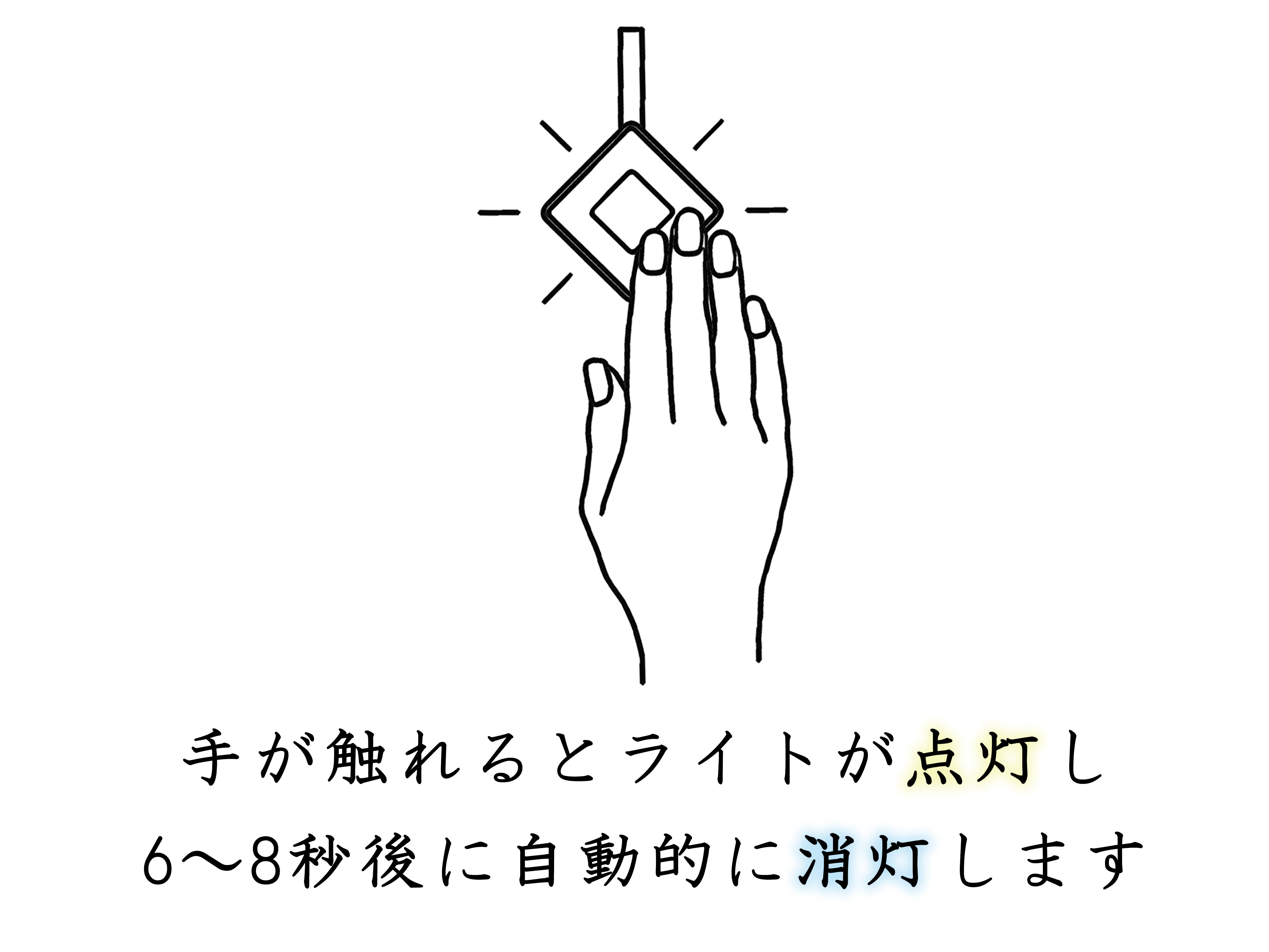 煩わしいスイッチ操作はいりません!カバンの中に入れた手が触れるとすぐに内蔵されたセンサーが反応して自動的にライトが点灯します。8秒程度でライトは自動的に消灯します。