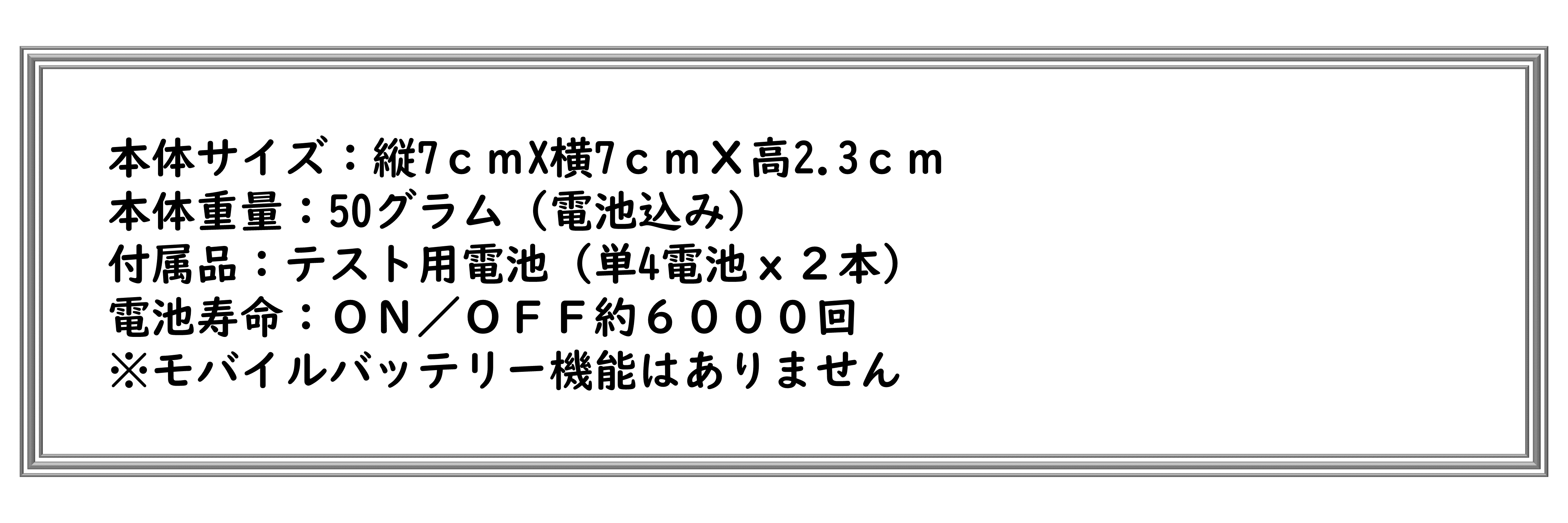 A. ハンドバッグライト機能のみを使用の場合、『SOI.+』2000mAhは約7000回、『SOI.+』500mAhは約1500回程度点灯することができます。