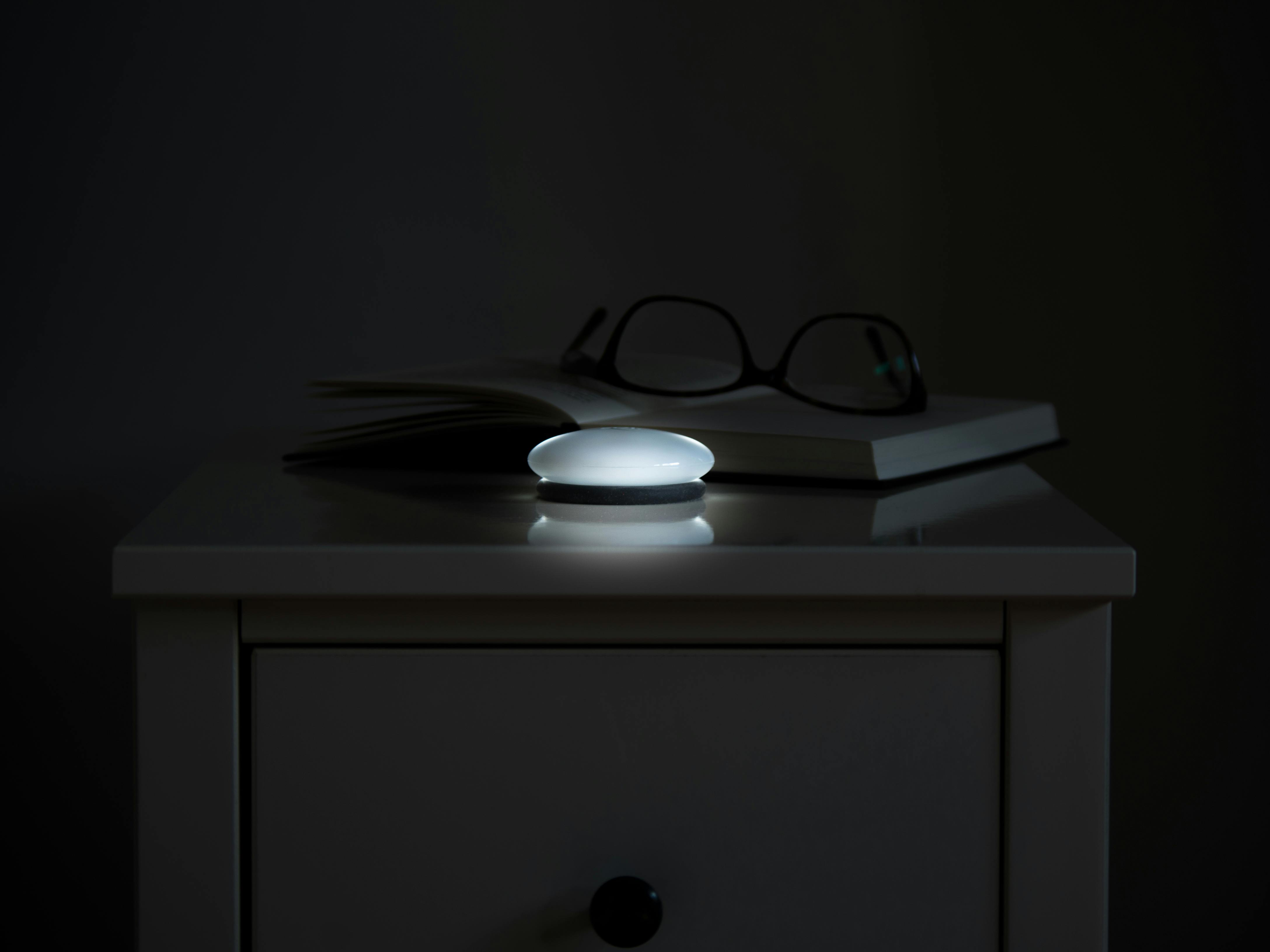 例えば、『SOI.』を枕元やベッドサイドに置いてみてください。手が触れるだけで点灯する簡易照明になります。夜中にトイレへ起きたときには『SOI.』が優しく寝室を照らします。