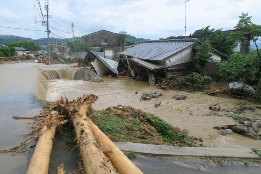集中豪雨が9時間にわたり続き、気象観測史上でも最大級の集中豪雨となりました。現在でも仮設住宅で生活している方が多く、まだ道路などが整備されていない地域もあります。