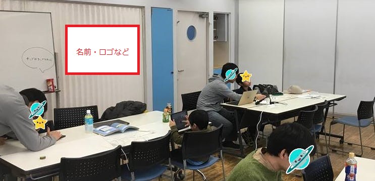 下記のようにロゴを張り出し、それを写真に撮ってブログ、twitter、facebook、connpass等に掲載いたします。