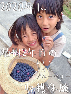 2020年に植樹2年目のブルーベリー、レモン、ライムの収穫体験