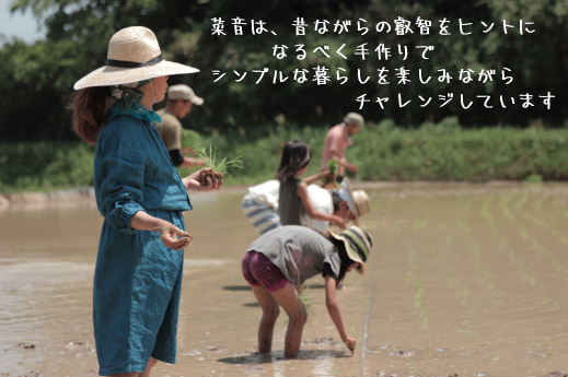 私たち菜音ファームは、農薬や化学肥料は一切使わずに自然と人間の調和を目指しそのために物質の循環や微生物の環境を考え、自然のままを基本に野菜やお米を生産しています。