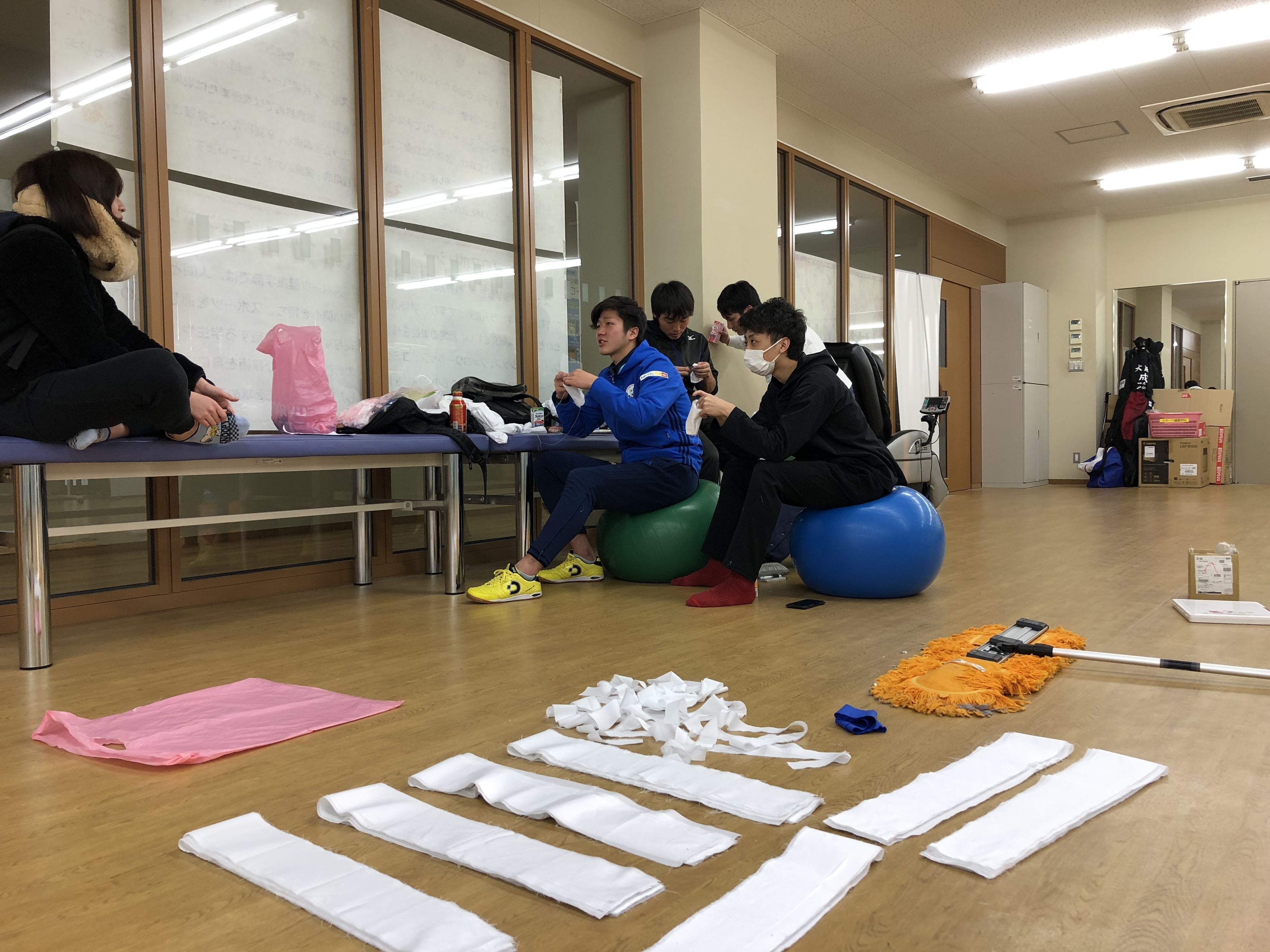 ひと通り確認できたら、毎度恒例のハチマキ&玉入れの玉づくり!!