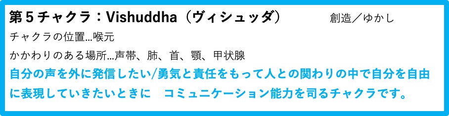第5Chakraの香り:イランイラン(スパイシーで華やかな甘いフローラルの香り)官能的で気分を高揚させてくれるような、ムードのある香り。心の扉を開き可能性を開かせてくれるようなときを楽しめる。