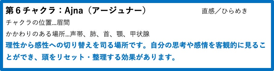 チャクラとは、人の意識や生命力といったエネルギーが集結し出入りしているエネルギーのコントロールセンターのようなもので、カラダのいたる所にあります。エネルギーはこのチャクラを起点に車輪のように絶えずグルグル回って活力を生み出し、その一つ一つが心身に対して影響力を持っていると考えられています。