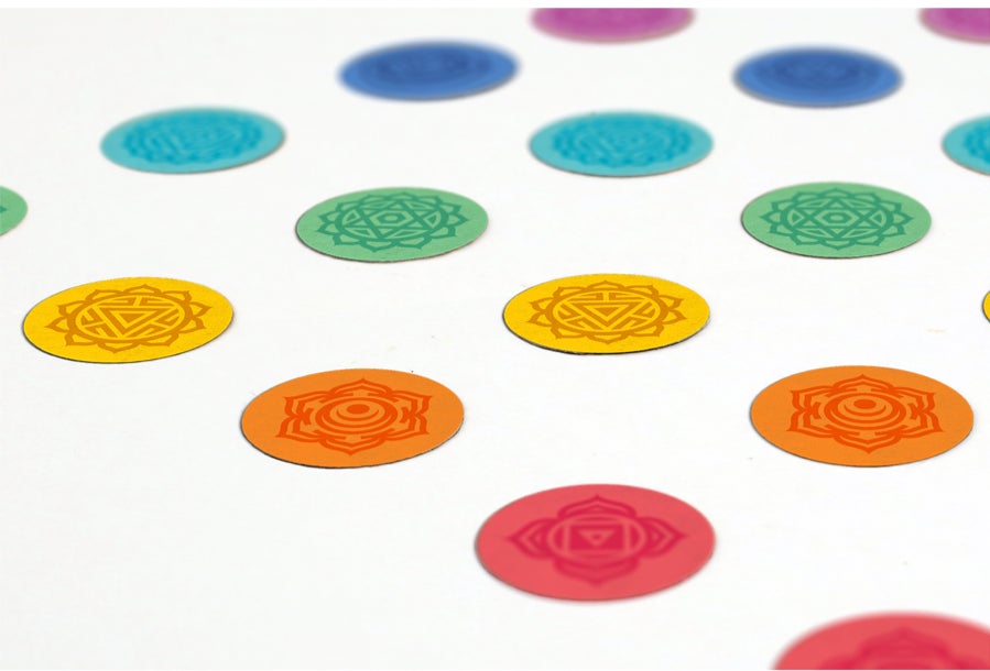 ② チャクラを象徴するシンボルデザインとチャクラに応じたレインボーカラー