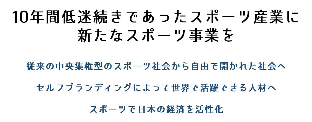 そんな思いの人の為に、何かその架け橋となる事業を展開できたらと思ったのがきっかけです。その為には今の日本のスポーツ全体が変わらなければいけない。