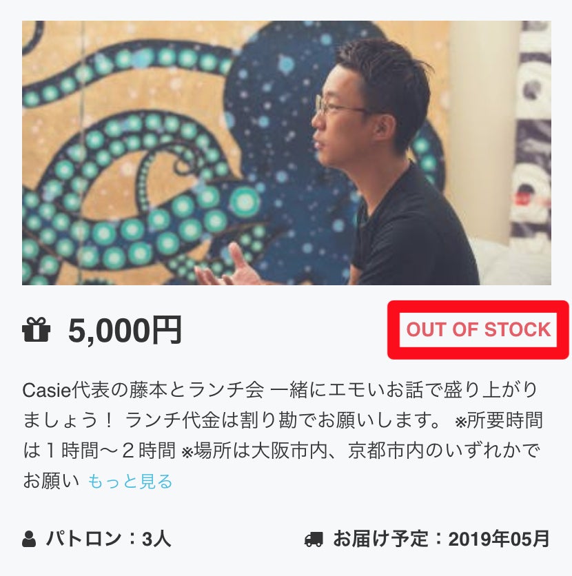 ランチ券をお選びいただいたパトロン様がどなたなのかは、本プロジェクトが終了するまで情報が開示されませんので、開示され次第直接ご連絡させていただきます。ぜひ代表の藤本(エモ本)とのランチをお楽しみに!