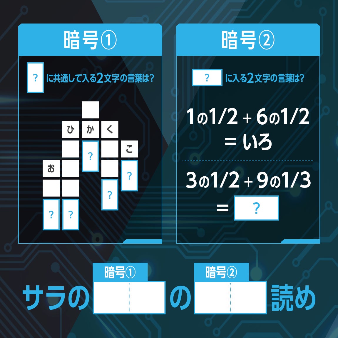 最後にだけど・・・私サラからの挑戦状!ってことで、謎解きを出題したよ。きっとあなたなら解けるはず。これ解けるとライブ当日に何か良いことあるかも!?ぜひチャレンジしてみて、正解がわかったらこの回答入力フォームから回答してね!