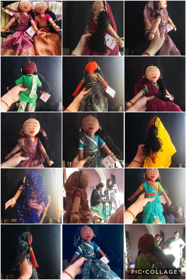 Semillas de Conciencia さんの高品質なお人形 ( なんとお人形さんの来ている服の生地は、人間のサリー用の良質な生地から作られていて、本当のサリーの着付けで着せられています)、