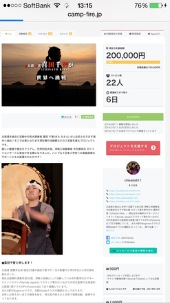 2014/10/11 20:49達成致しました! 残り6日という所で キャンプファイヤー プロジェクト、 目標金額でした15万円を 達成致しました。 ご支援して下さった皆様、 ありがとうございました。 これで、ドイツへ行くことができます!!! 本当に本当に感謝です。 プロジェクト締切日まで、 ご支援を受付させて頂いております。 どうぞよろしくお願い致します! もっと見る今の想いを動画にしました!