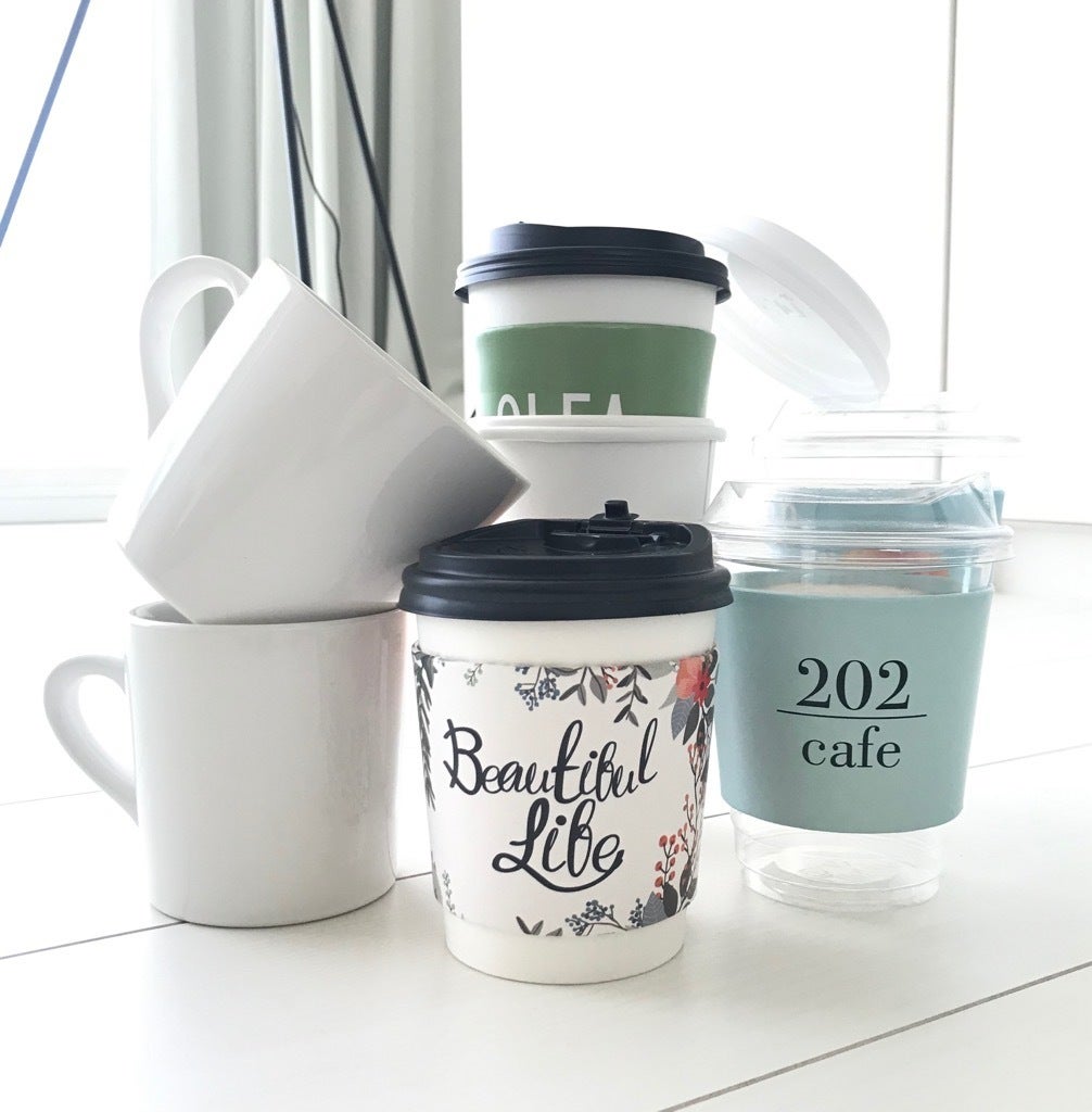 本日店舗で使用するマグカップとテイクアウトカップの