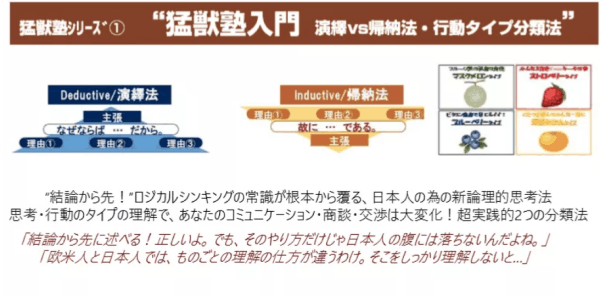 P&G, フィリップモリスで30年。元外資系企業役員が長年の実務経験の末たどり着いた、日本人と日本人組織のための究極のビジネス講座が「猛獣塾」各種研修プログラムです。