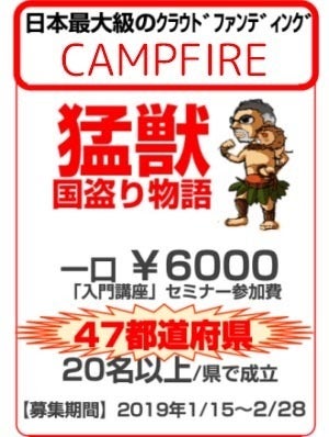 「猛獣塾」プロジェクトの理念に賛同し、「猛獣国盗り物語」へ講座参加者ではなく、戦国大名(=各県別世話人)として参加希望の方は別途こちらへご連絡ください。