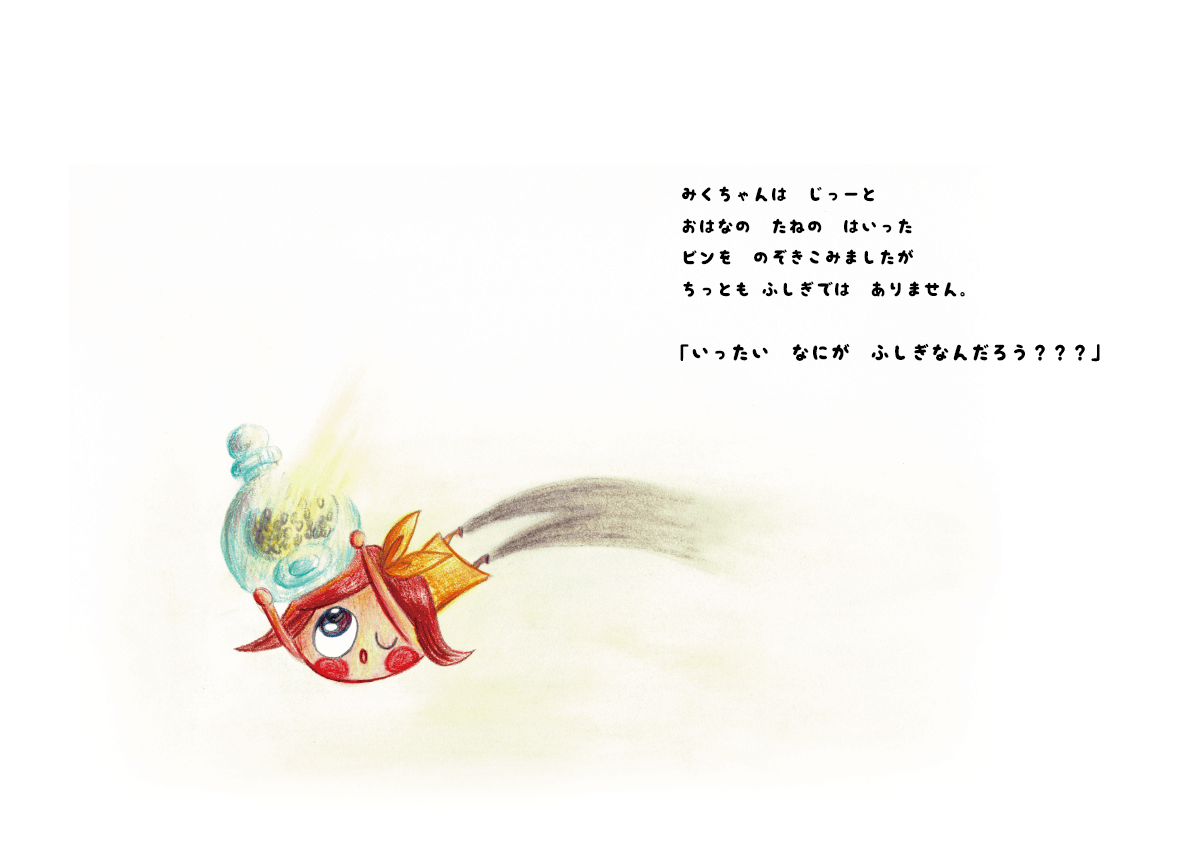 みくちゃんは とても うれしく なりました。 もう この おはなが ふしぎなであることを すっかり わすれていました。どんな おはなだって うれしいはずです。