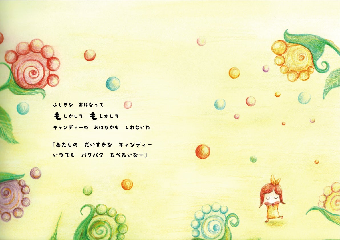 ふしぎな おはなって もしかして もしかして キャンディーの おはなかも しれないわ。「あたしの だいすきな キャンディー いつでも パクパク たべたいなー」